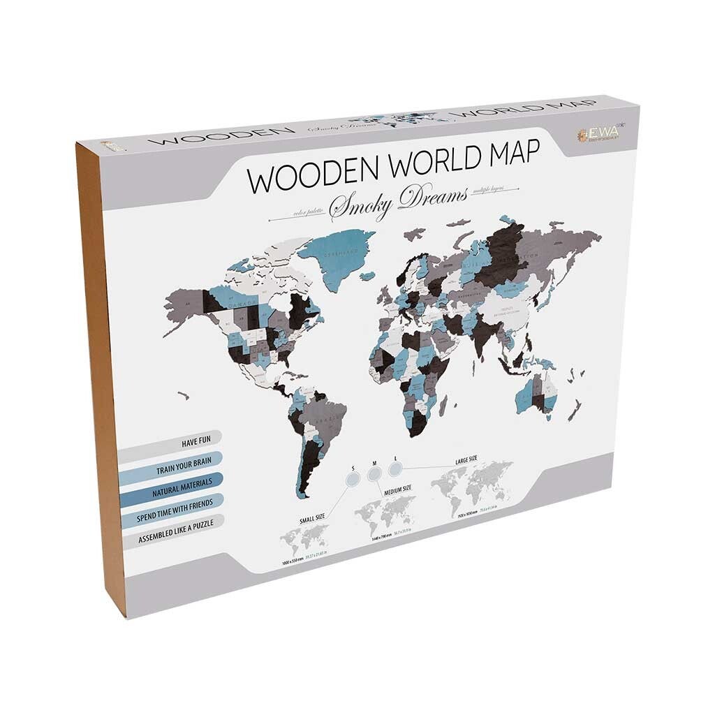 Unieke wereldkaartpuzzel voor je interieur. In verschillende maten en kleuren. Perfect aanpasbaar, stijlvol ontwerp en eenvoudige montage.